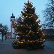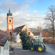 Da wird er aufgestellt, der Christbaum.