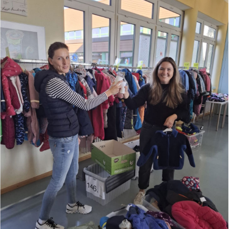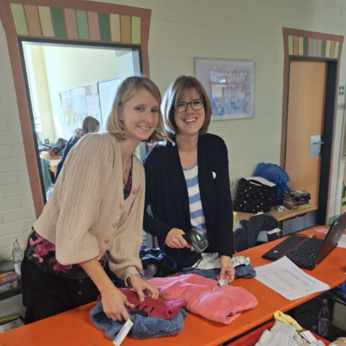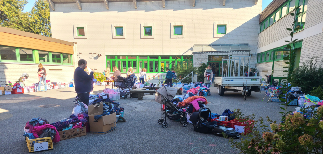 Und so wurde auch dieses Jahr wieder im Vorfeld heftig sortiert, etikettiert und am 3. Oktober morgens zum Basar getragen. Dort wartete ein Heer fleißiger Helfer, um die Waren für die angehenden Käufer wieder zu sortieren und ansprechend zu präsentieren.
